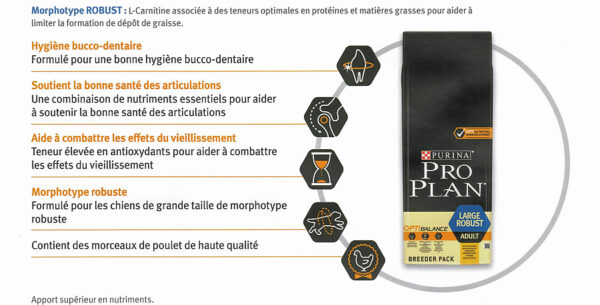 Aliment complet pour chiens adultes de grande taille de morphotype robuste. OPTIBALANCE™ est une combinaison de nutriments spécialement sélectionnés, avec des teneurs adaptées pour les chiens de tailles et morphotypes différents afin de soutenir leurs besoins spécifiques et les aider à rester au mieux de leur forme.