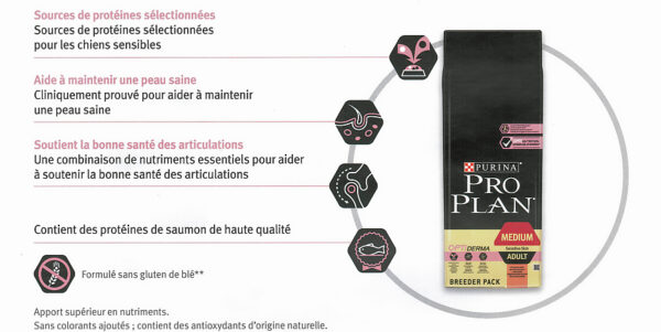 Aliment complet pour chiens adultes de taille moyenne ayant une peau sensible. OPTIderma™ contient une combinaison spéciale de nutriments, cliniquement prouvée pour aider à maintenir une peau en bonne santé et un beau pelage, ainsi que des sources de protéines sélectionnées pour aider à réduire les réactions cutanées associées à des sensibilités alimentaires.