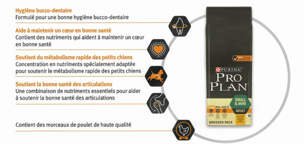Aliment complet pour chiens adultes de petite taille. OPTIbalance™ est une combinaison de nutriments spécialement sélectionnés, avec des teneurs adaptées pour les chiens de tailles et morphotypes différents afin de soutenir leurs besoins spécifiques et les aider à rester au mieux de leur forme.