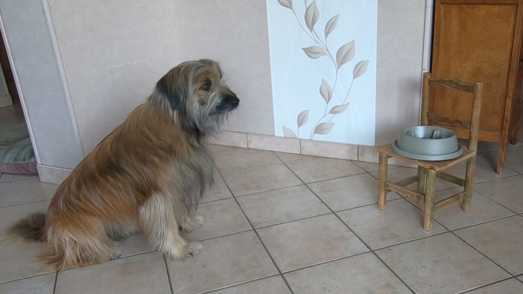 Pour apprendre votre chien à tolérer la présence de quelqu’un à coté de sa gamelle, gardez une poignée de croquettes à part.
